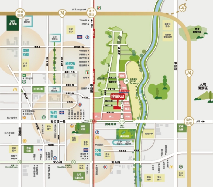 74號、G3、G0站三軸交匯,擁抱公園好事多商圈,我最近!